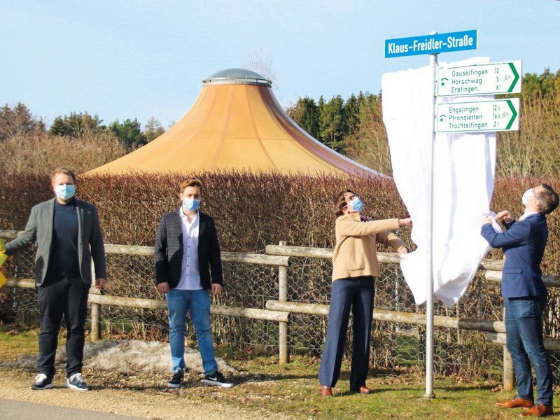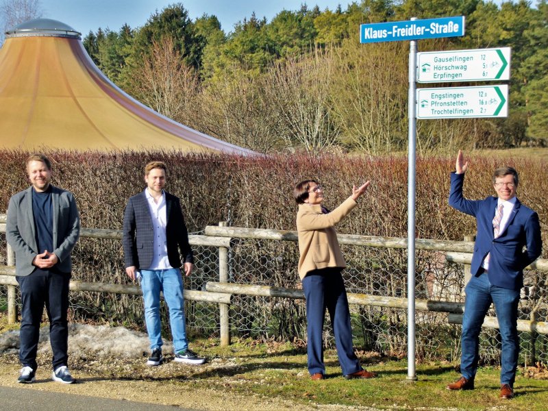 Und genau diese Ehre kommt jetzt Klaus Freidler zu, dem 2010 plötzlich verstorbenen Firmenchef von ALB-GOLD Teigwaren. Im Sommer 2020 hat der Trochtelfinger Gemeinderat dem Antrag der Familie Freidler einstimmig zugestimmt. Ein gutes halbes Jahr später sind jetzt die neuen Straßenschilder montiert und durch Bürgermeister Christoph Niesler und Irmgard, Oliver und André Freidler enthüllt worden.