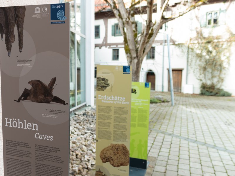 Schwäbische Alb / 23. April 2021 -  Das Infostellen-Netzwerk des Geoparks Schwäbische Alb umfasst 28 Orte darunter Schauhöhlen, Museen, Naturschutzzentren und Bildungseinrichtungen. Sie alle bekommen eine Ausstattung im neuen Corporate Design des Geoparks. Diese visualisiert die vier Kernthemen Höhlen, Fossilien, Eiszeit, Erdschätze und spiegelt das weltweite UNESCO-Geopark-Netzwerk.
