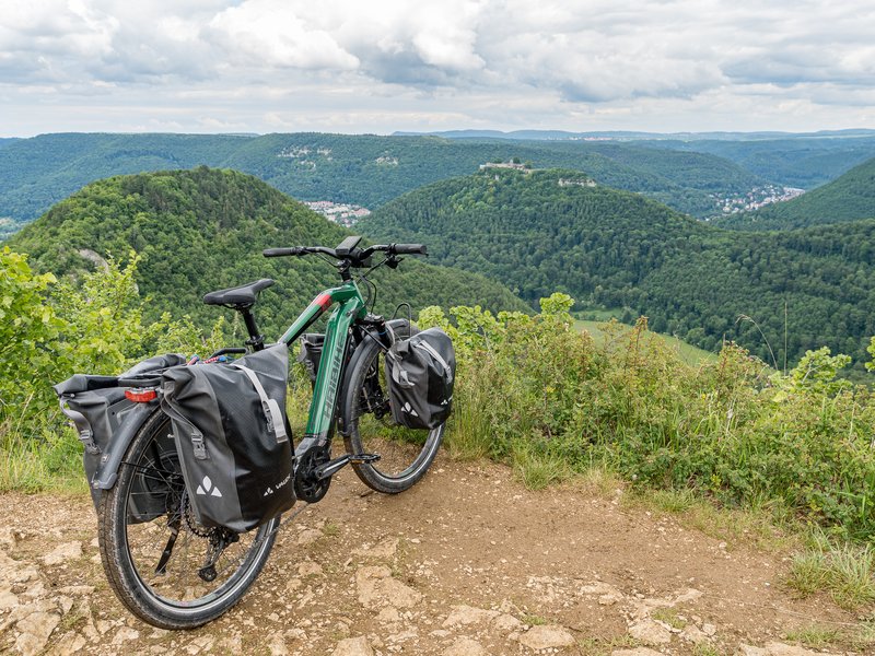 Die Schwäbische Alb hat sich jüngst zu einem besonderen Ziel für e-Bikerinnen und e-Biker entwickelt. Unter dem Motto „Alb statt Alpen“ wurde der „Alb-Crossing“ eigens als sportlich herausfordernde, aber technisch gut machbare Mehrtagestour speziell für eine breite e-Bike-Community als Gemeinschaftsprojekt mit den Landkreisen Ostalb, Göppingen, Esslingen, Reutlingen, Tübingen, Zollernalb und Tuttlingen neu konzipiert. Mit einer Gesamtlänge von 370 km und 7.000 Höhenmetern führt sie, entweder in 6 Etappen oder individuell eingeteilt, von Aalen bis Tuttlingen quer über die Schwäbische Alb mitten durch die Natur und an der aussichtsreichen Albtraufkante entlang.