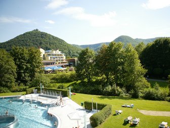 Erholung fü Wanderer und Genießer im Biosphärenhoitel Graf Eberhard: gemütliches Zimmer, Restaurant mit Terrasse und regionale Spezialitäten. Aktiv sein, entspannen, etwas für die Geundhiet tun und es sich gut gehen lassen.